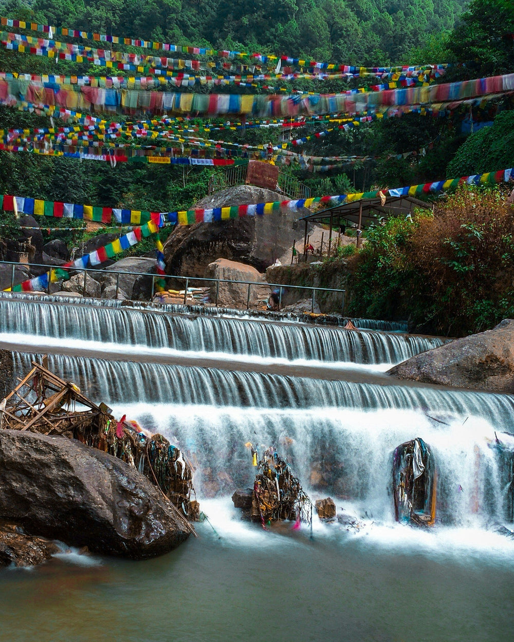 The lower hills transform into vibrant green scenery with powerful waterfalls and fresh air.
